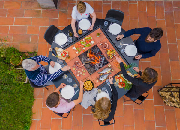 Nos Tables Brasero sont vos meilleures alliées pour des soirées réussies et conviviales ! Pensées pour s’adapter à toutes les situations, elles accueillent de 4 à 12 personnes où chacun cuisine autour de la table à son rythme. Une table de jardin astucieuse équipée d’un capot amovible parfaitement intégré et discret qui s’enlève en un tour de main et laisse place à un Braséro !
